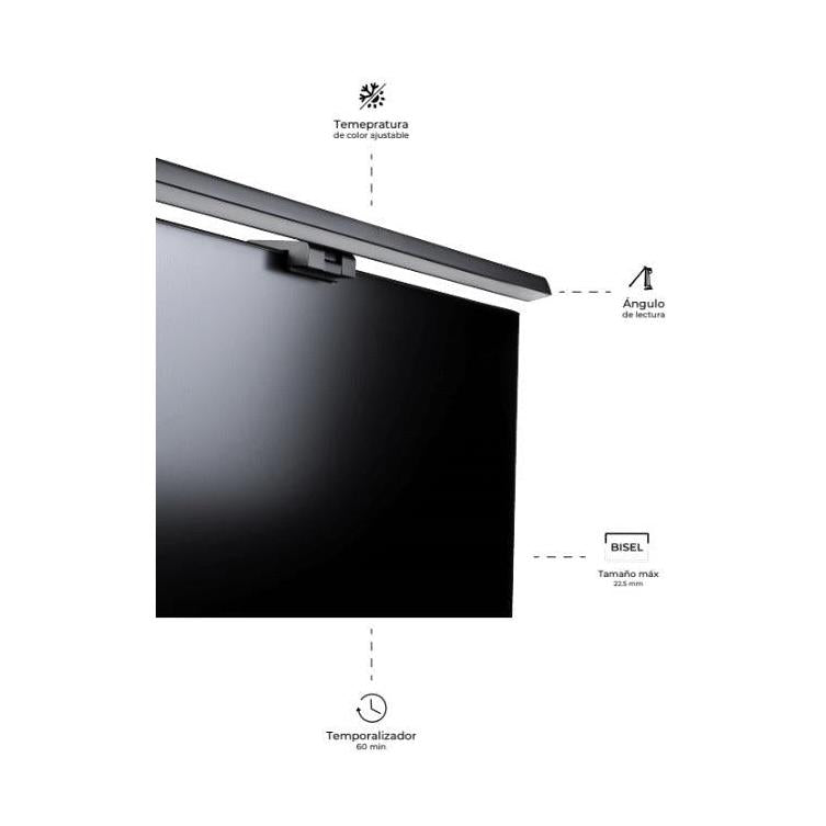 Este producto es una carcasa de color negro con una temperatura de color mínima de 3000 K y una profundidad de 33 mm. Tiene un peso de 100 g y se alimenta a través de USB. La temperatura de color máxima es de 6000 K. Tiene un ancho de 500 mm y una altura de 15 mm. La cubierta está hecha de acrilonitrilo butadieno estireno (ABS) y aluminio.
