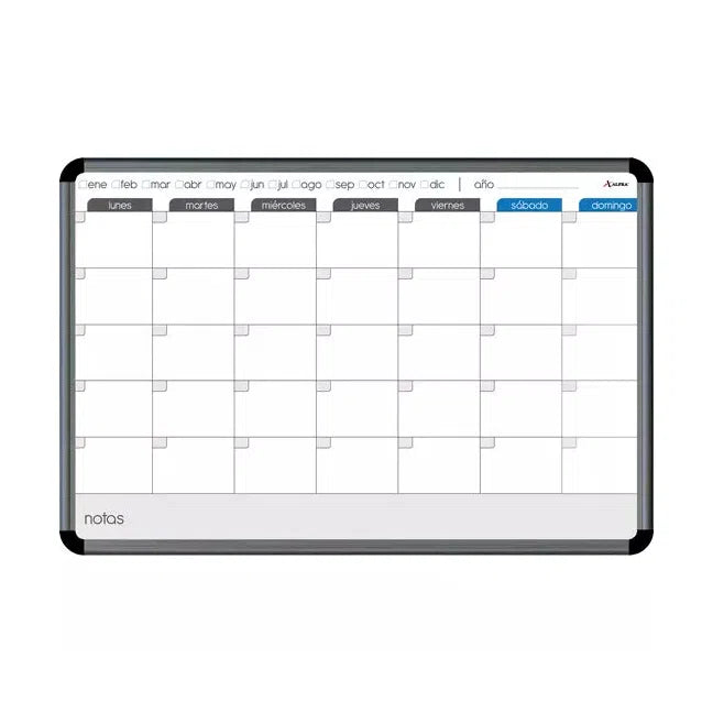 El Alfra Pintarrón Planeador Mensual es un producto de alta calidad diseñado para satisfacer las necesidades de aquellos que buscan una herramienta eficiente y práctica para organizar sus tareas diarias. Con unas dimensiones de 60x90cm, este pintarrón ofrece suficiente espacio para escribir todas las actividades del mes en curso. Su superficie blanca permite la escritura con marcadores especiales sin dejar manchas ni residuos, lo que garantiza una limpieza fácil y rápida después de su uso. Además, el material utilizado en su fabricación es resistente a los arañazos y al desgaste por lo que se puede utilizar durante mucho tiempo sin perder su calidad original. Este modelo cuenta con un diseño elegante y moderno en color gris que combina perfectamente con cualquier ambiente o decoración. Su formato planeador mensual facilita la planificación a largo plazo permitiendo visualizar todo el mes completo de manera clara e intuitiva. En resumen, el Alfra Pintarrón Planeador Mensual es una excelente opción para quienes buscan organizarse mejor tanto en casa como en la oficina gracias a su amplia superficie, facilidad de limpieza y durabilidad.