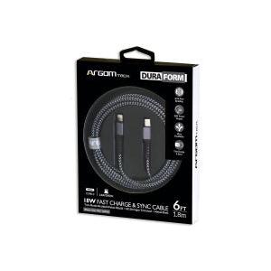 El cable USB-C Macho - Lightning Macho de Argomtech es un accesorio que permite la conexión entre dispositivos con puerto USB C y dispositivos con puerto Lightning. El conector 1 del cable es de tipo USB C, mientras que el color del producto es negro. La longitud total del cable es de 1.8 metros. El calibre AWG del cable es de 22, lo cual garantiza una buena calidad en la transmisión de datos y energía eléctrica. Además, el factor de forma del conector 2 es derecho, lo que facilita su inserción en los puertos correspondientes. Este cable cuenta también con suministro de potencia a través del puerto USB, lo que significa que puede utilizarse para cargar dispositivos compatibles. Asimismo, ofrece soporte para carga rápida, permitiendo una recarga más eficiente y rápida de los equipos conectados. En cuanto al material utilizado en el forro del cable, se ha empleado nylon resistente para brindar mayor durabilidad y protección contra posibles daños o desgastes por uso frecuente. Por otro lado, el revestimiento externo presenta un diseño trenzado que ayuda a prevenir nudos y enredos durante su manipulación o almacenamiento. Cada paquete incluye una pieza única del producto mencionado anteriormente. Es importante destacar que tanto el factor de forma como el género son derechos tanto para el conector 1 como para el conector 2 respectivamente. La tasa máxima de transferencia alcanzada por este cable es de hasta 480 Mbit/s (megabits por segundo), asegurando así velocidades adecuadas para transmitir archivos u otros tipos información entre los dispositivos conectados mediante esta interfaz.