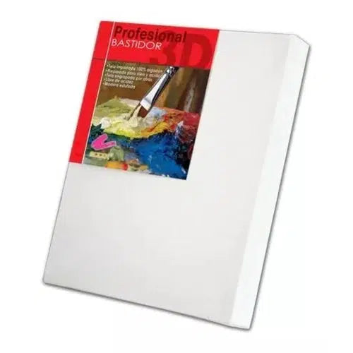 Bastidor Profesional 3D con tela 306, importada, 100% algodón, libre de ácido, preparada para pintar al óleo o acrílico. Montada sobre un bastidor de madera de 3.8 cm de espesor, cubierto por tela, permitiendo pintar sobre los costados.