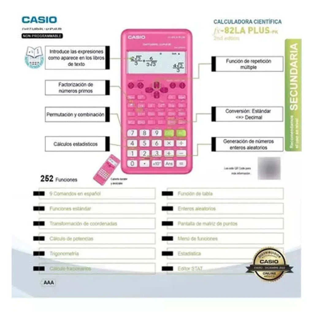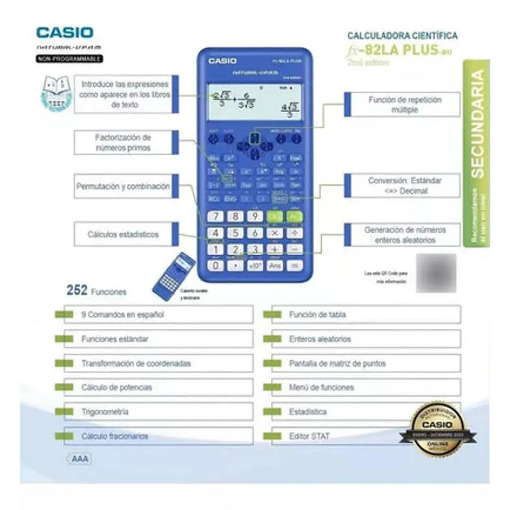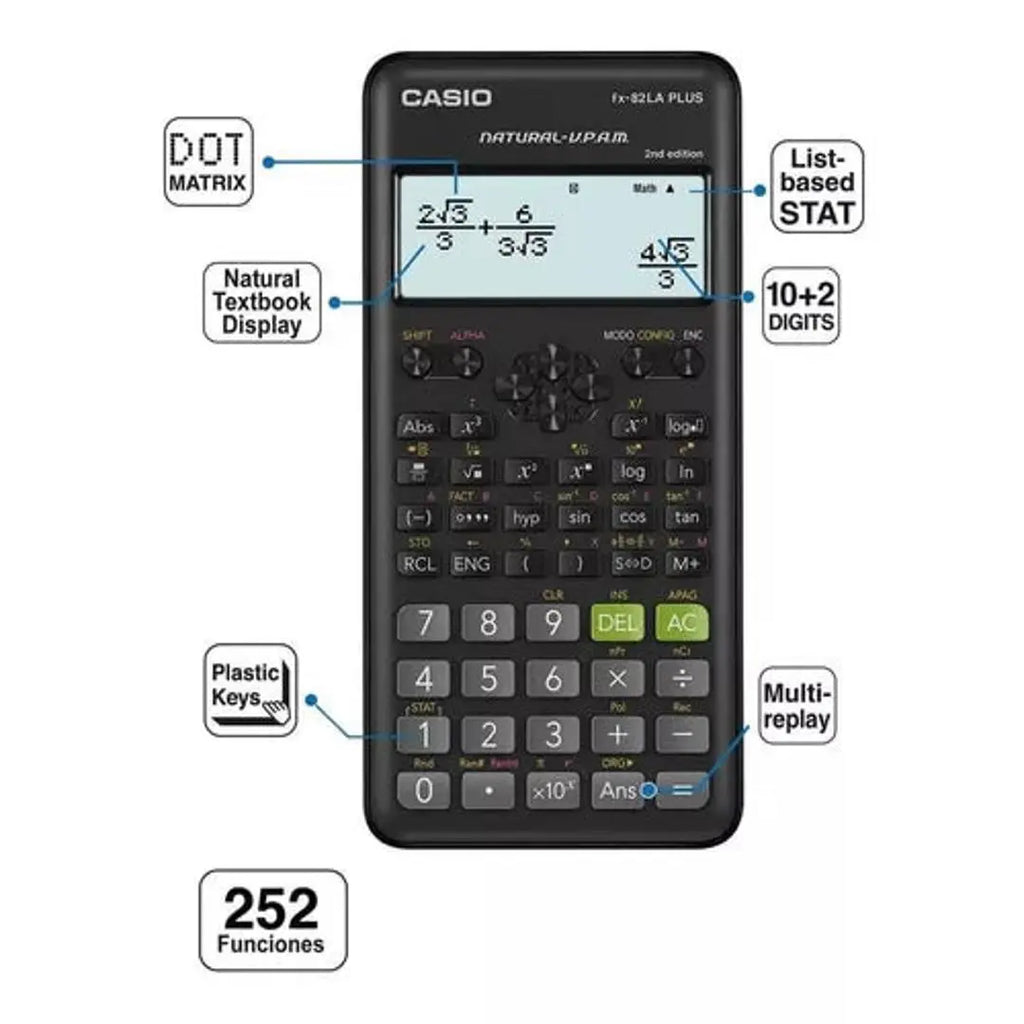 Calculadora Cintífica Casio fx-82LA PLUS 2da. Edición con 252 Funciones, ideal para el estudiantes de secundaria.