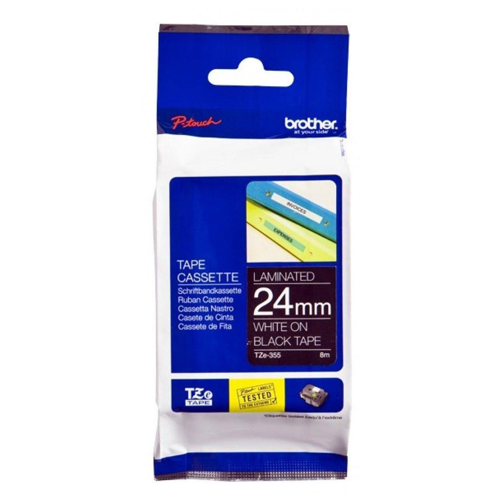 CINTA BROTHER TZE355 BLANCO SOBRE NEGRO, 24MM X 8M
