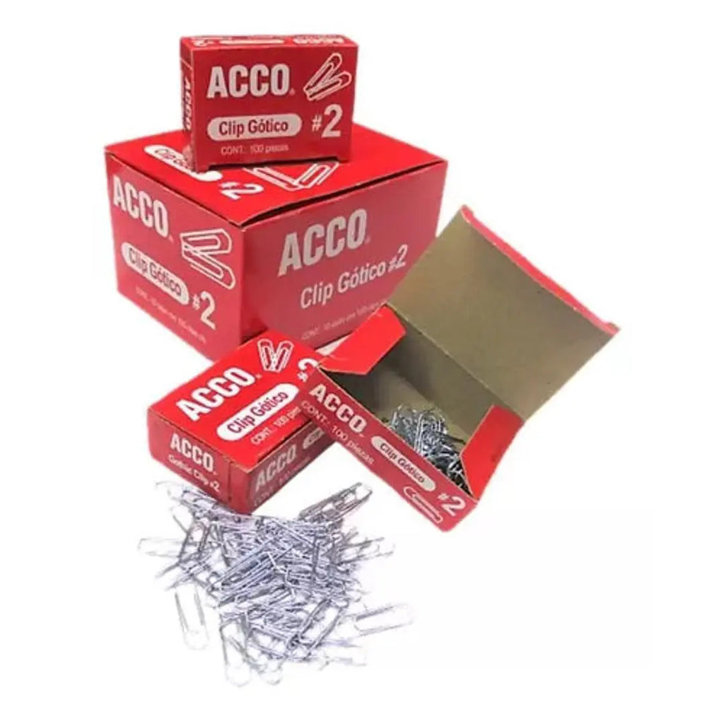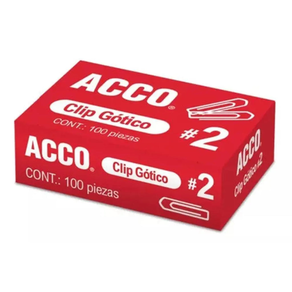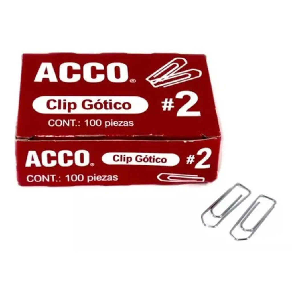 Clip Gótico No. 2 Acco 27.5 Mm 10 Cajas Con 100 Clips C/u Hasta 20 Hojas. Contenido 1000 Piezas.