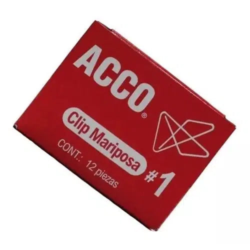 Clip Mariposa No. 1 Acco Sujeta 150 Hojas Caja Con 12 Piezas.