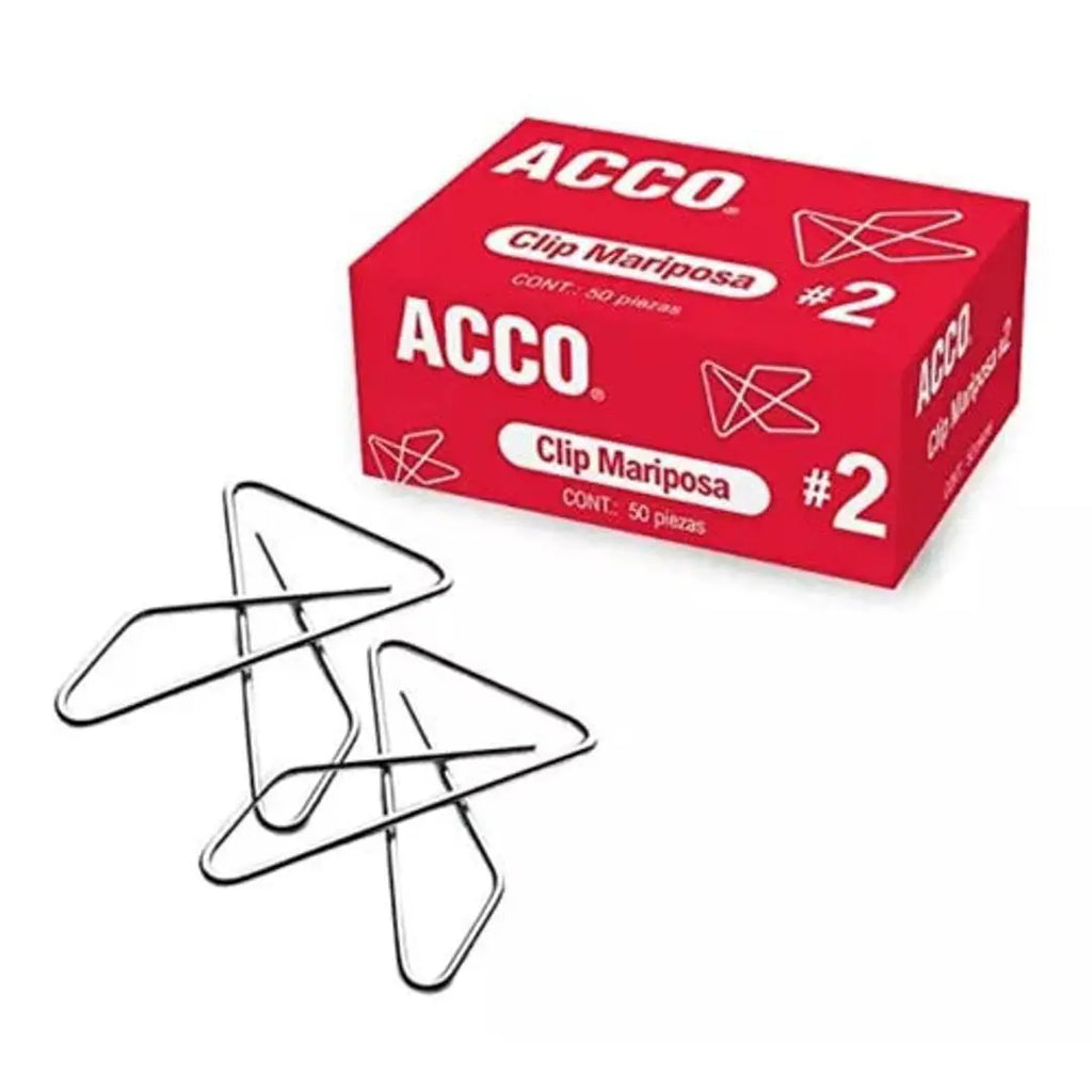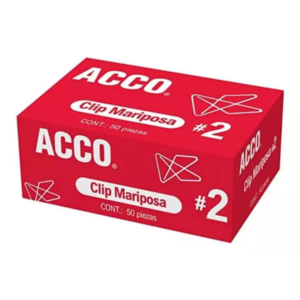 Clip Mariposa No. 2 Acco Sujeta 100 Hojas Caja Con 50 Piezas.