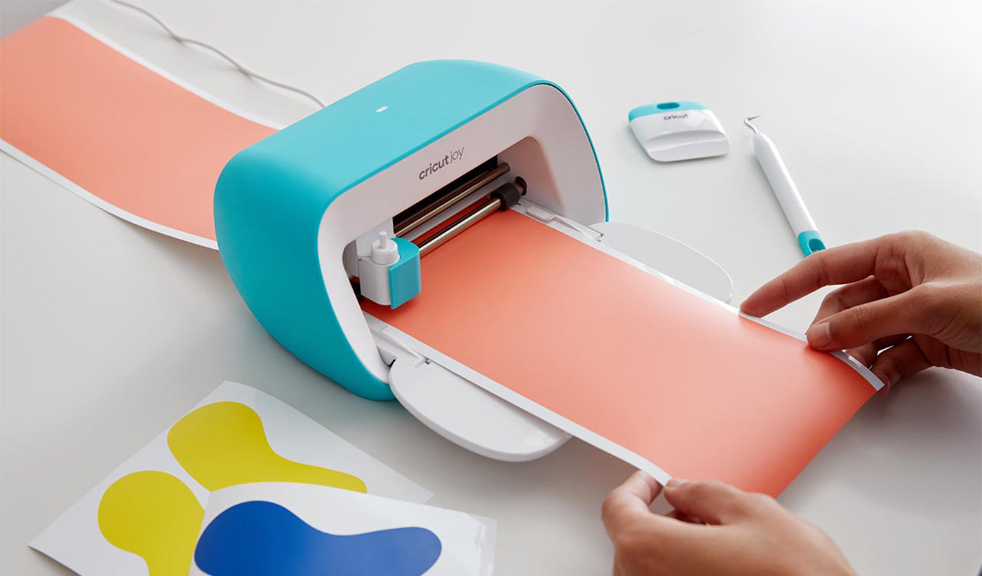 Añade ese toque personal añadiendo ese toque extra a tus proyectos es más fácil que nunca. Cricut Joy puede hacer cortes continuos de hasta 4 pies y cortes repetidos de hasta 20 pies utilizando materiales inteligentes Cricut. (Disponible en variedades de vinilo, HTV para planchar y etiquetas de vinilo). No necesita estera de corte. Sólo carga y listo. O utiliza otros materiales populares como la tinta Cricut Infusible, cartulina, o tarjetas de inserción utilizando las alfombrillas de corte Cricut Joy y Cricut Joy Card Mats.