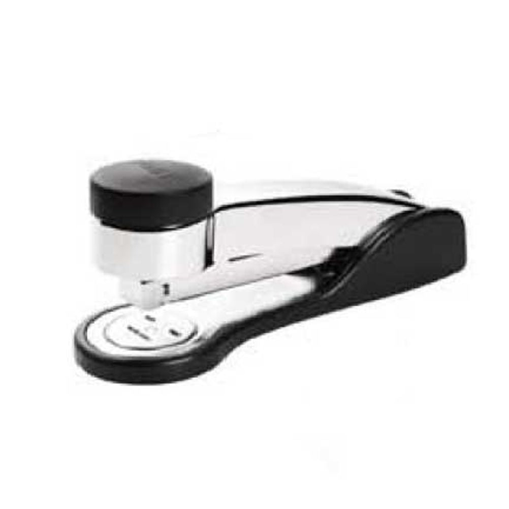 La engrapadora modelo 2004 está hecha de acero troquelado con un terminado en cromo de alto brillo, además cuenta con base antiderrapante para evitar algún accidente en la escuela, oficina o en el hogar.