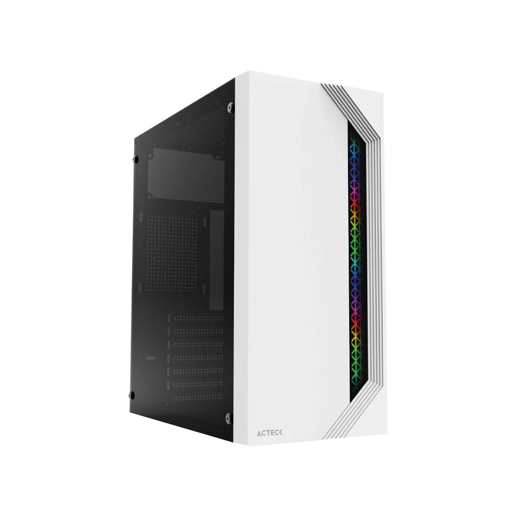 El Gabinete Acteck Viken GM434 RGB es un modelo de tipo Midi-Tower que combina funcionalidad y diseño moderno. Este gabinete incluye una fuente de alimentación de 500W, lo que proporciona la energía necesaria para un rendimiento óptimo de los componentes internos. Su color blanco y negro le otorga un aspecto elegante y contemporáneo. El diseño del gabinete permite la instalación de placas madre en formatos ATX, Micro ATX y Mini-ATX, ofreciendo versatilidad para diferentes configuraciones de hardware. La ventana lateral permite visualizar el interior del gabinete, lo que es ideal para quienes desean exhibir sus componentes y la iluminación RGB que se puede integrar. El gabinete cuenta con dos bahías para discos duros de 2.5", lo que facilita la instalación de unidades de almacenamiento adicionales. La máxima longitud de la tarjeta gráfica que se puede instalar es de 33 cm, lo que permite el uso de tarjetas gráficas de gama alta. Además, la altura máxima del cooler de la CPU es de 15.5 cm, lo que proporciona opciones para sistemas de refrigeración eficientes. En cuanto a la ventilación, el gabinete no incluye ventiladores preinstalados, pero es compatible con ventiladores traseros de 120 mm. No se soportan ventiladores frontales, superiores ni laterales, lo que puede influir en la elección de soluciones de refrigeración adicionales. El gabinete Acteck Viken GM434 RGB tiene un peso de 2.7 kg y dimensiones de 410 mm de altura, 180 mm de ancho y 300 mm de profundidad. Dispone de dos puertos USB 2.0 y una entrada y salida de audio, lo que permite una conectividad básica para periféricos. Este gabinete es una opción adecuada para quienes buscan un diseño atractivo y funcional, con la posibilidad de personalizar el sistema de refrigeración y la iluminación interna.