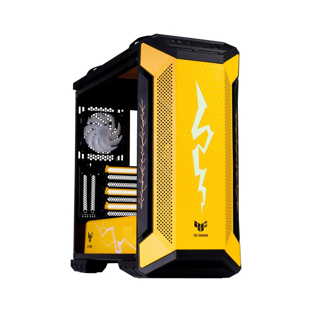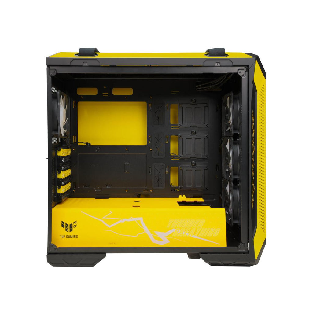 El Gabinete ASUS TUF Gaming GT501 Demon Slayer Mid Tower, modelo 90DC0015-B48000, es una opción robusta y funcional para entusiastas del gaming. Con un diseño en color amarillo y materiales de metal, este gabinete combina estética y durabilidad. Su factor de forma Midi Tower permite una instalación eficiente de componentes. El gabinete cuenta con una ventana lateral de vidrio templado, que ofrece una vista clara del interior, resaltando la iluminación de los ventiladores. La capacidad de enfriamiento líquido está presente, con soporte para radiadores de hasta 360 mm en la parte frontal y superior, y un ventilador trasero de 140 mm ya instalado. Se pueden instalar hasta cuatro ventiladores en total, con la opción de añadir hasta siete ventiladores adicionales para mejorar la circulación de aire. Con un ancho de 251 mm, una profundidad de 552 mm y una altura de 545 mm, el gabinete proporciona un espacio adecuado para la instalación de componentes. Soporta placas madre de formato EATX y cuenta con ocho ranuras de expansión, lo que permite una amplia personalización y expansión del sistema. En términos de conectividad, el gabinete incluye dos puertos USB 3.0, facilitando la conexión de dispositivos externos. La iluminación de los ventiladores se presenta en colores azul, verde y rojo, añadiendo un toque visual atractivo al conjunto. El peso del gabinete es de 11 kg, lo que refleja su construcción sólida. No incluye fuente de alimentación, lo que permite al usuario elegir la opción que mejor se adapte a sus necesidades. La compatibilidad con discos duros de 3.5" asegura un almacenamiento adecuado para juegos y aplicaciones. En resumen, el Gabinete ASUS TUF Gaming GT501 Demon Slayer es una opción versátil y estilizada, ideal para quienes buscan un equilibrio entre rendimiento y diseño en su configuración de juego.