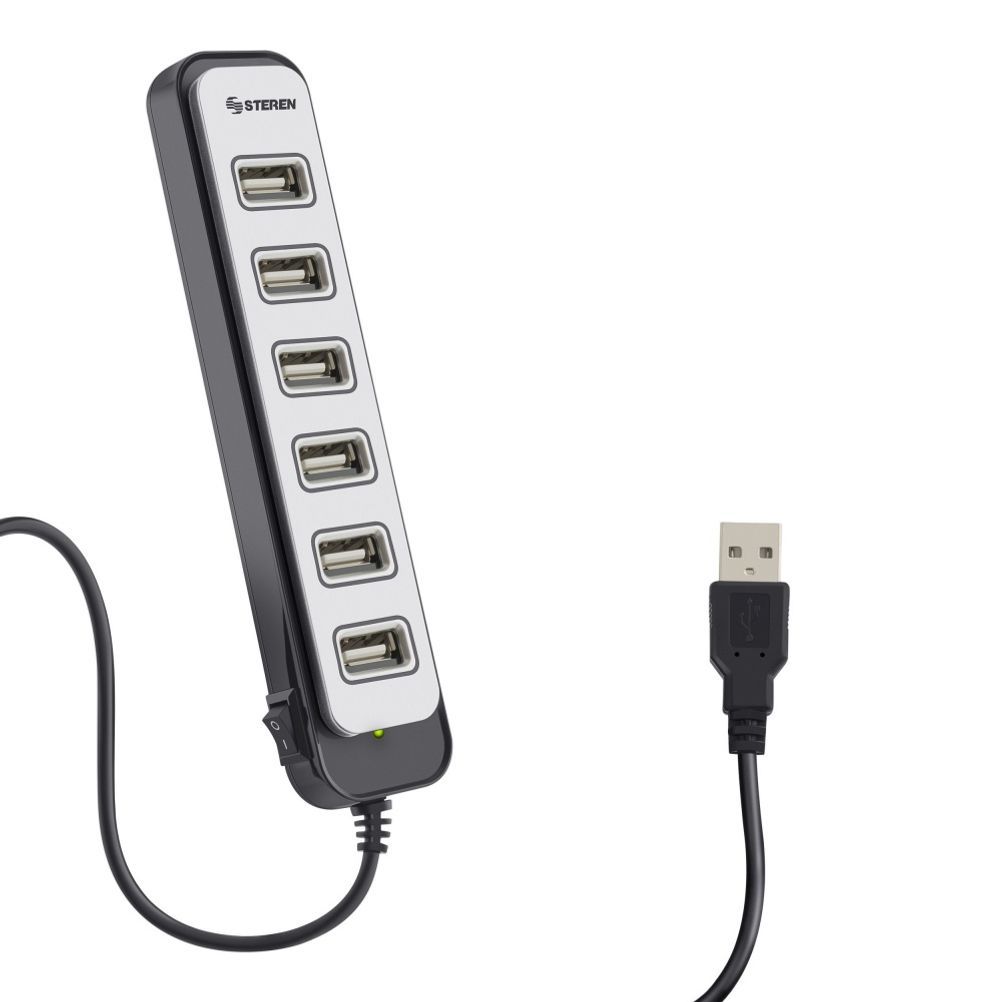 Hub de Interfaz Steren USB-537 Alámbrico 7 Puertos USB 2.0 Adaptador AC Incluido Negro, Gris