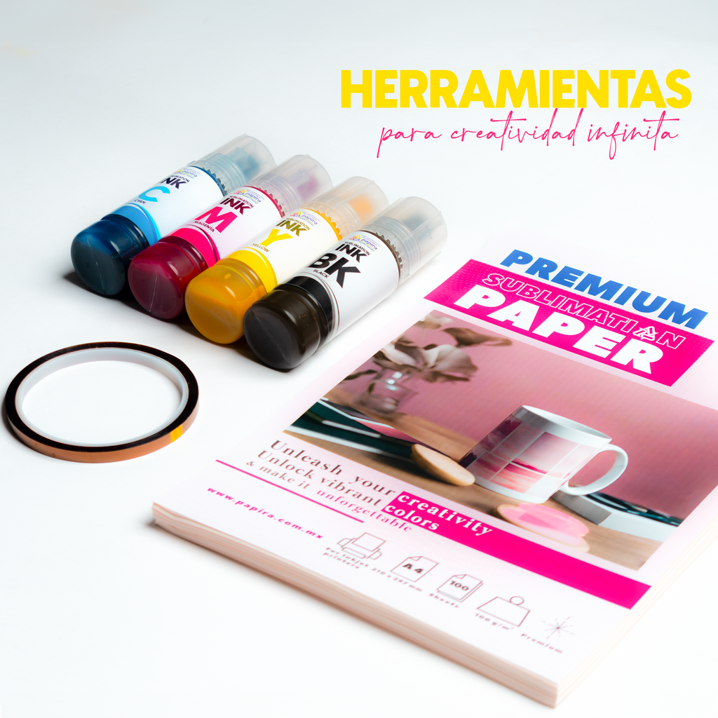 Kit Básico de Sublimación Papel + Tinta + Cinta Papira