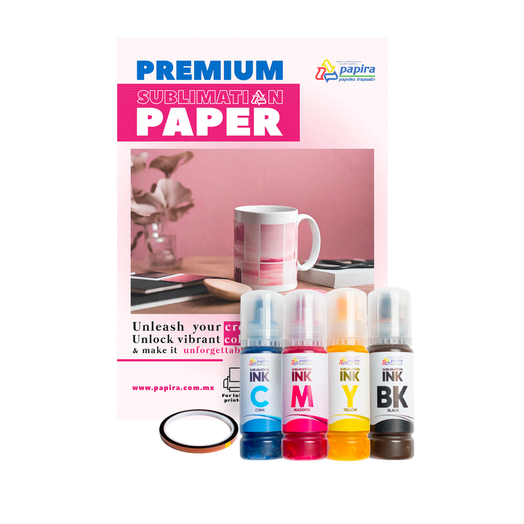 Ya seas principiante o profesional, el Kit Básico de Sublimación Papel + Tinta + Cinta Papira es la elección perfecta para dar vida a tus ideas y crear productos personalizados con acabados impecables.