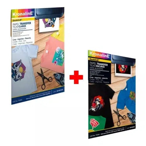 Kit Papel Transfer Telas Claras Y Oscuras Kronaline 20 Hojas