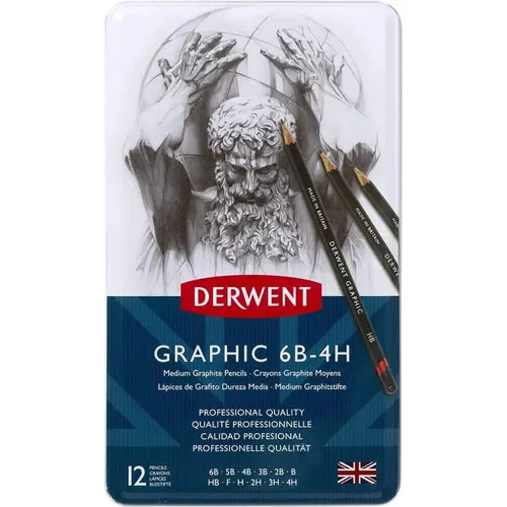 Lápices De Grafito Medios Derwent Graphic 6b - 4h 12 Piezas