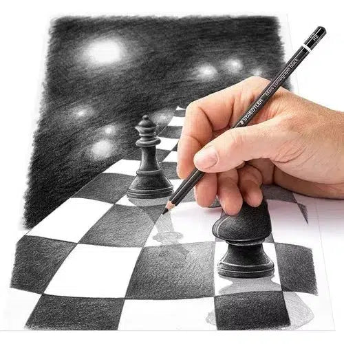 Lápiz para dibujar de alta calidad. Especialmente adecuado para dibujar, hacer bocetos, esbozos y retratos. Proporción elevada de carbón para un resultado mate y negro intenso.