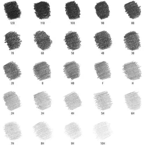 - Graduaciones: (9B, 8B, 7B, 6B, 5B, 4B, 3B, 2B, B, HB, F, H, 2H, 3H, 4H, 5H, 6H, 7H, 8H, 9H) y 4 Lumograph Black (8B, 6B, 4B y 2B)