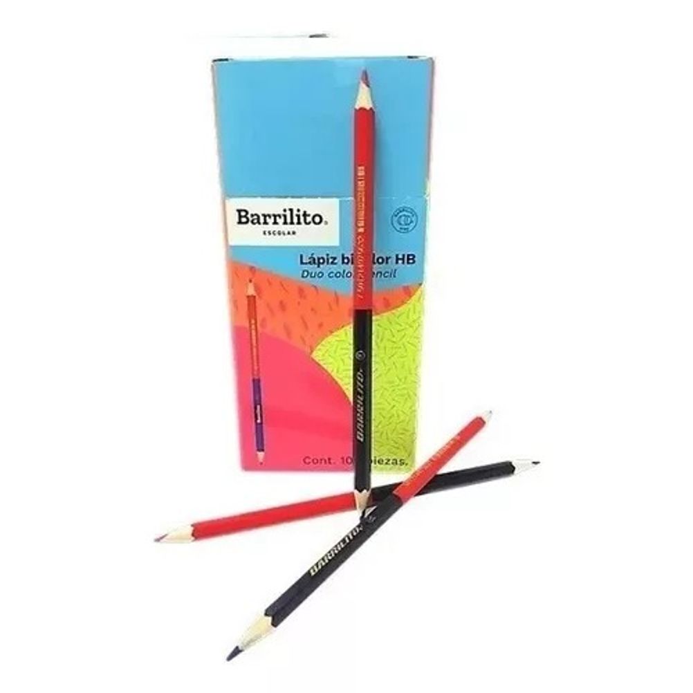 Lápiz Bicolor Barrilito HB Hexagonal de madera Caja C/100 Pzas