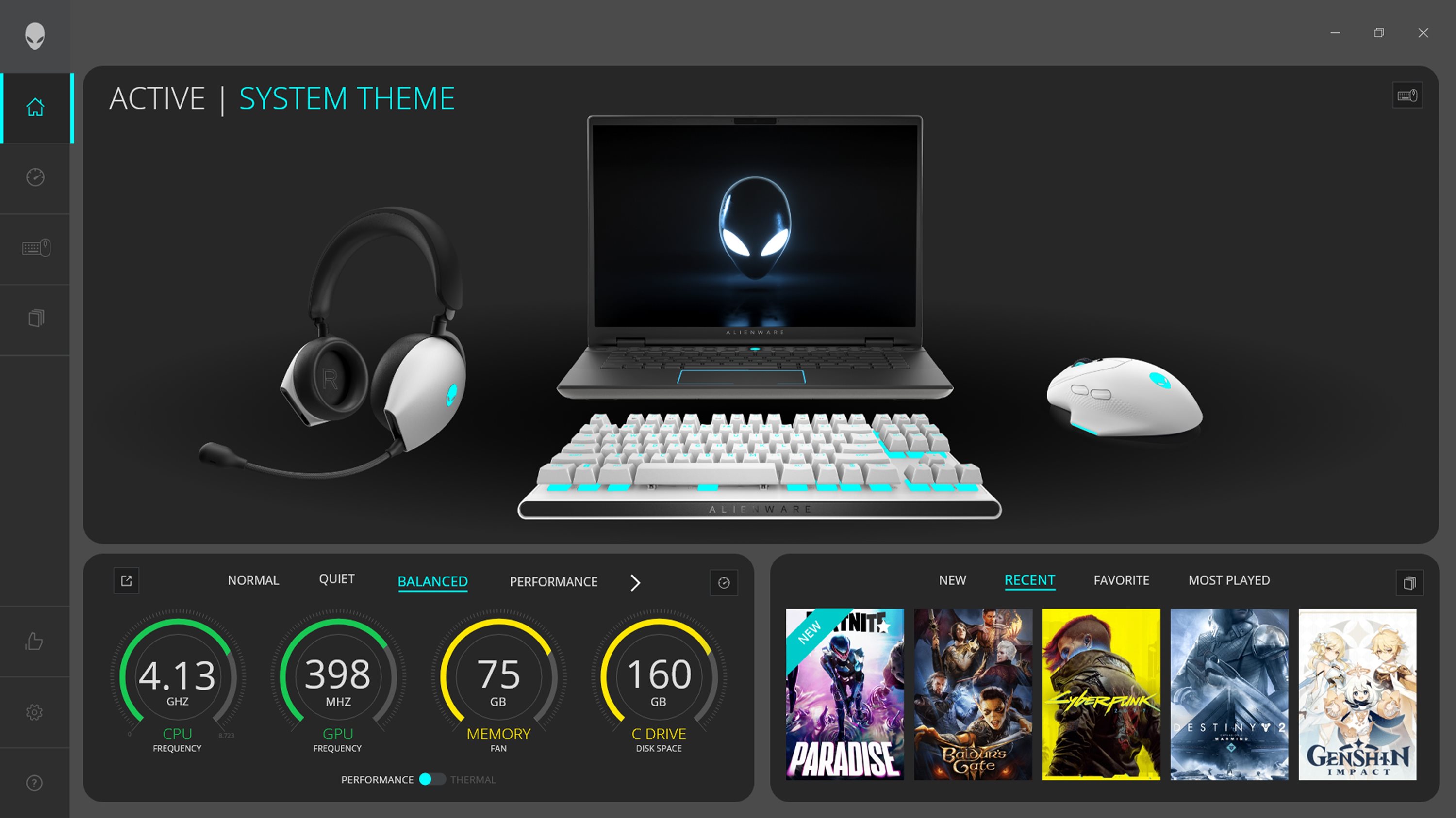 Controle y vea las estadísticas de CPU, GPU, memoria y temperatura sin salir del juego.AlienFX