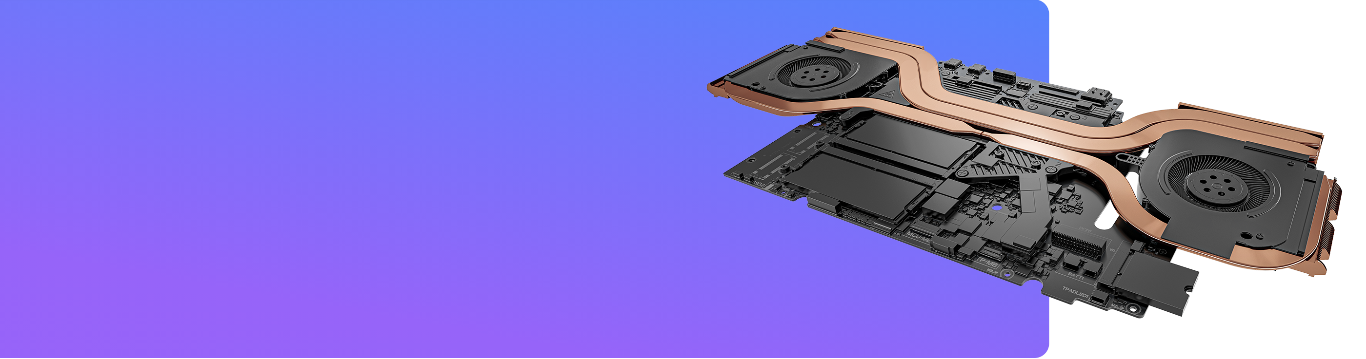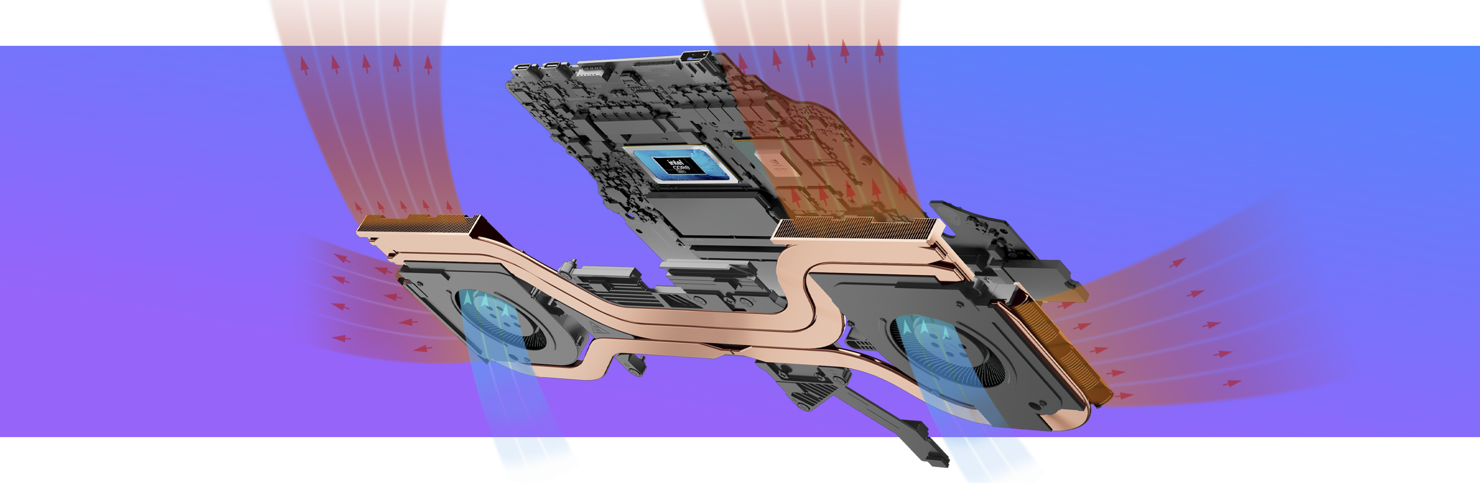 Dos ventiladores con 94 aspas ultradelgadas hacen circular el aire por cuatro conductos de calor de cobre para garantizar un rendimiento óptimo.