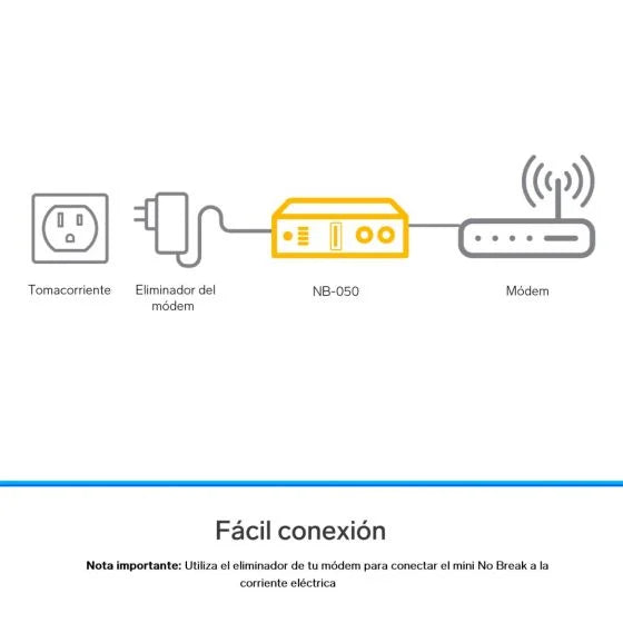 *Nota: Para conectar equipos como cámaras Wi-Fi, switches Ethernet, relojes checadores u otros, podría ser necesario adquirir por separado un eliminador de 12 Vcc 2 A para alimentar el mini No Break.