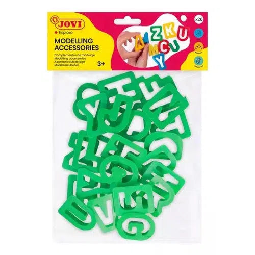 Descubre con los complementos de modelaje Jovi todo lo que eres capaz de hacer con nuestras pastas de modelar. ¡Hasta donde te lleve tu imaginación! Deja que la inspiración mueva tus manos y crea lo inimaginable con Jovi. Estos cortadores para plastilina y moldes ta ayudarán a crear y darle foma a la platilina. Contiene 28 figuras de letras.