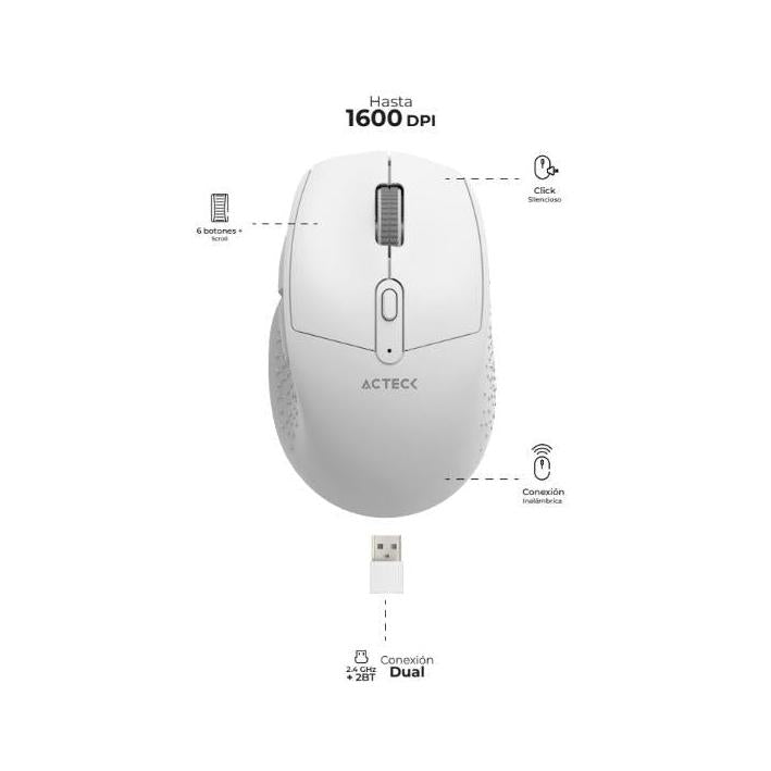 El Mouse Acteck Óptico Optimize Ergo MI680 es un dispositivo inalámbrico diseñado para ofrecer comodidad y eficiencia en el entorno de oficina. Este mouse cuenta con tecnología óptica para la detección de movimientos, lo que garantiza un seguimiento preciso y fluido en diversas superficies. Con una frecuencia de banda de 2.4 GHz, el mouse proporciona una conexión estable y rápida. Su interfaz de receptor inalámbrico es USB tipo A, lo que facilita la conexión a diferentes dispositivos. El mouse es compatible con sistemas operativos Windows y MAC, lo que lo convierte en una opción versátil para usuarios de diferentes plataformas. El diseño del mouse es ergonómico y está destinado para uso diestro, lo que promueve una postura cómoda durante largas horas de trabajo. Su color blanco y la superficie monocromática le otorgan un aspecto moderno y elegante. El mouse incluye un receptor y funciona con una batería alcalina tipo AA, con un consumo de energía de 30 mA. Este modelo ofrece tres modos de resolución de movimiento, con una resolución máxima de 1600 DPI, permitiendo personalizar la sensibilidad según las necesidades del usuario. Además, cuenta con un total de seis botones y una rueda de desplazamiento vertical, lo que facilita la navegación y el acceso a funciones adicionales. Con unas dimensiones de 109.7 mm de ancho, 43 mm de alto y 68 mm de profundidad, el mouse tiene un peso ligero de 77 g, lo que lo hace fácil de transportar y manejar. La capacidad de soportar una batería y su diseño optimizado para la oficina hacen de este mouse una herramienta práctica y eficiente para el trabajo diario.