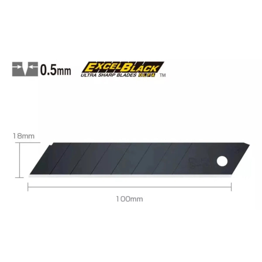 Repuesto de hoja de 8 segmentos de 18 mm. Hecho de acero de herramienta de carbono de alta calidad. La cuchilla negra ultrafina y resistente tiene un borde un 25% más afilado para una menor resistencia al corte. El ángulo frontal exacto de 59 grados optimiza la potencia de corte y minimiza la rotura de la cuchilla Para todos los cuchillos utilitarios OLFA PRO 18 mm.
