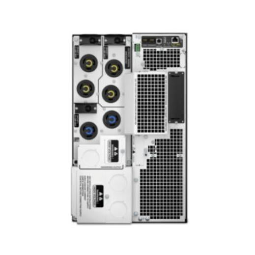 Características Unidad Smart-UPS SRT de APC, 10.000 VA y 208 V Conexión 10/100 BaseT Los informes detallados de antigüedad de las baterías, carga, salud, etcétera, reducen el riesgo de tiempo de inactividad y facilitan el reemplazo oportuno de las baterías del UPS. Notificación sobre fallas de la batería Analiza las baterías a fin de advertir anticipadamente en caso de fallas posibles, lo que garantiza que el mantenimiento preventivo sea oportuno. Modo ecológico Modo de funcionamiento que permite saltear los componentes eléctricos en buenas condiciones energéticas que no se están utilizando para lograr un altísimo nivel de eficiencia operativa sin sacrificar la protección (patente en trámite) . Pantalla gráfica LCD Diagramas de esquema y de texto que muestran modos de operación, parámetros del sistema y alarmas. Convertible para torre o rack Protege la inversión inicial en sistemas UPS cuando se migra de un entorno en torre a otro de montaje en rack.