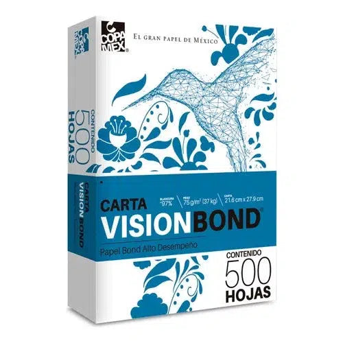 Papel Bond Alto Rendimiento Visión Bond Copamex Tamaño Carta Blanca Paquete con 500 Hojas 75 gramos.