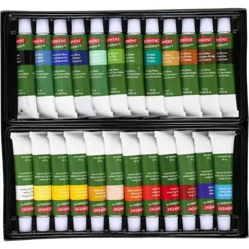 Los Acrílicos de Derwent Academy se hacen de pigmentos ricos y una formulación que conserva fuerza de teñido, viveza de color y consistencia si utiliza solo o mezclado con otros medio de pintura.