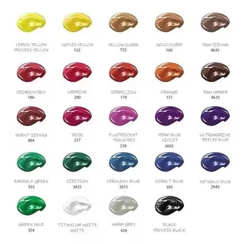 Pintura acrílica profesional elaborada con pigmentos contenidos en una emulsión plástica de gran adherencia a las superficies, tanto rígidas como flexibles: Papel, cartón, madera, cemento, yeso, metales, unicel, tela y cerámica.
