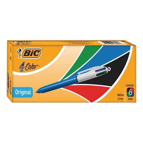 Pluma Bolígrafo Bic 4 Color Original Multicolor 1.0 Mm 6 Pzs