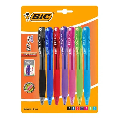 Pluma Bolígrafo Retráctil Bu3 Grip Fashion 1.0 Mm 7 Piezas