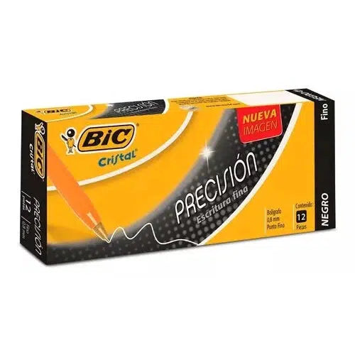 Punto fino 0.8 mm, Escritura suave y precisa, Cuerpo hexagonal, Tapa ventilada para evitar asfixia, El segundo bolígrafo más icónico de BIC Cristal, Ideal para los que buscan una escritura precisa y firme, Tinta color negra, cajilla con 12 piezas.