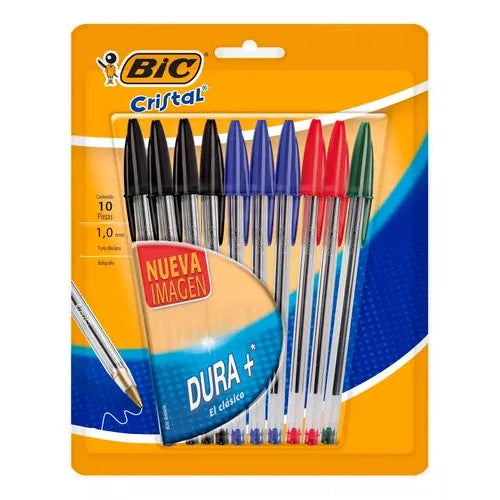 Pluma Lapicero Bic Dura+ Clásico Punto Mediano 1.0 Mm 10 Pzs