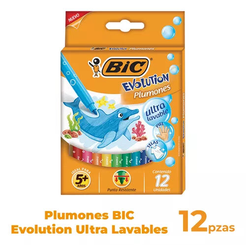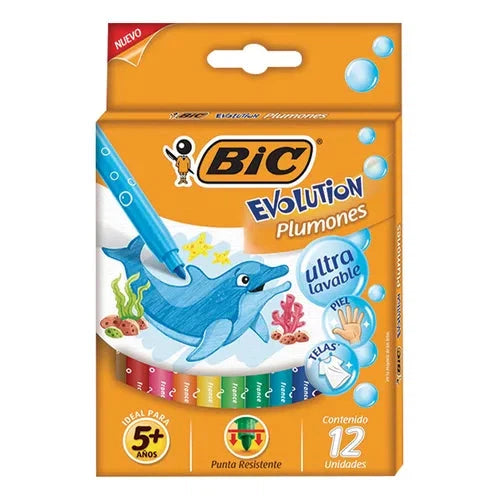 Plumón Bic Evolution Ultra Lavable Colores Intensos 12 Pzas