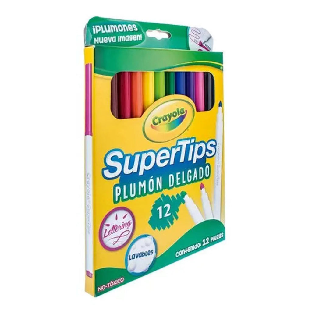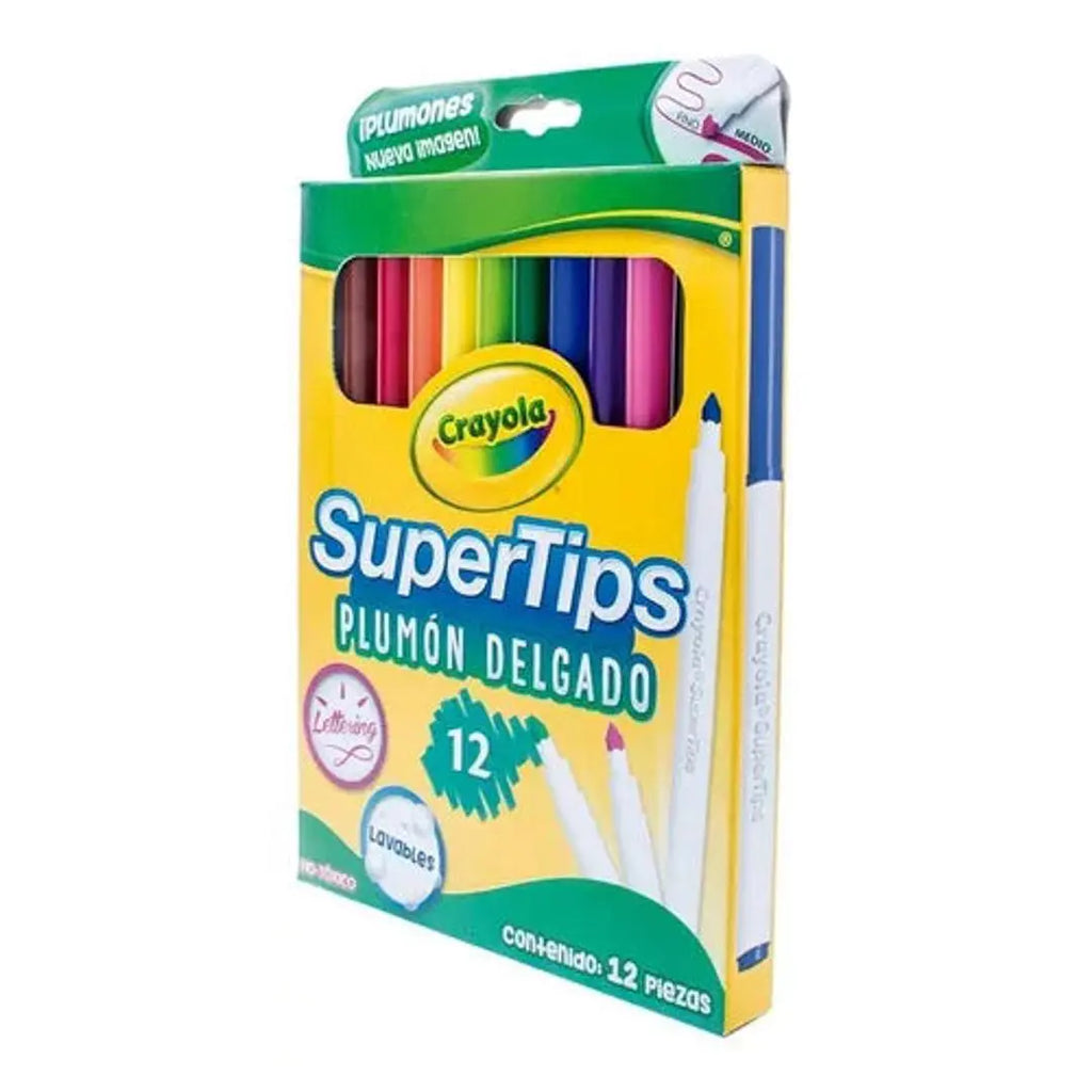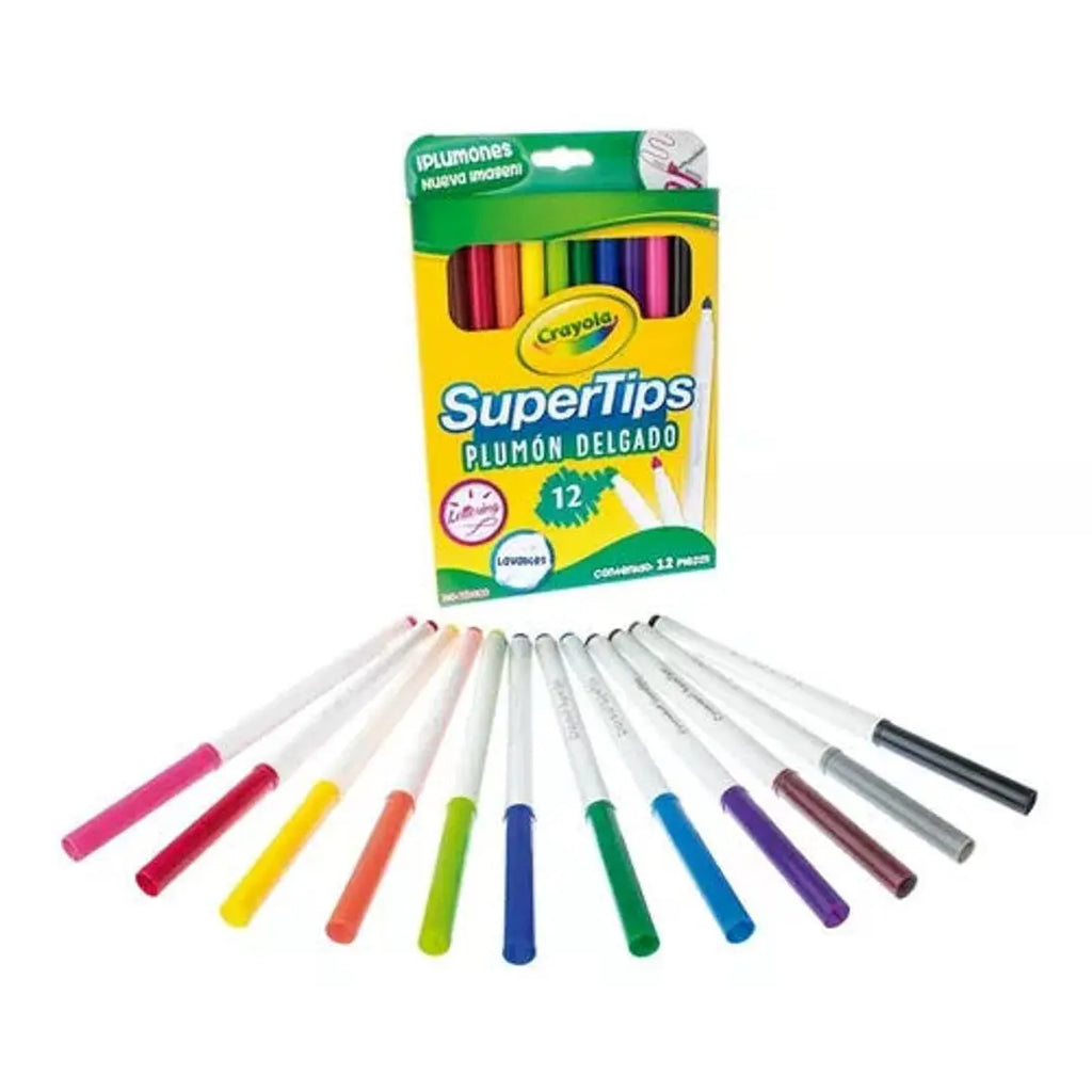 Plumones Super Tips Marcadores Delgados Crayola Lavables 12 Colores Punta cónica