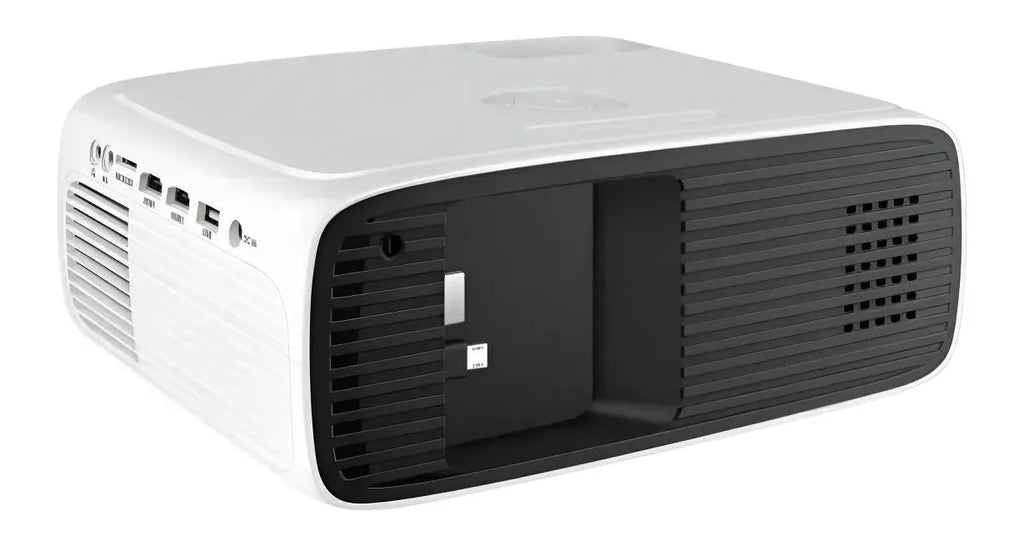 250 ANSI lumen (9 650 lúmenes). Proyección hasta de 150". 2 entradas HDMI (jack). 1 entrada HDMI (plug). 1 entrada AV 3,5 mm. 1 entrada USB. 1 entrada microSD. 1 salida de audio AUX 3,5 mm. Plug micro USB para recargar móviles. Incluye control remoto
