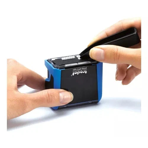 La imprentilla contiene letras, números, signos y símbolos varios, por lo que se pueden crear textos con fechas, números de teléfono, dirección de correo e-mail y mucho más; incluye el estuche para guardar los tipos y las pinzas para colocarlos en el sello.