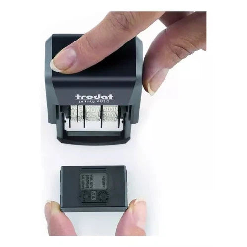 - Fechador de tamaño pequeño autoentintable - días en números, meses abreviados y banda de 12 años