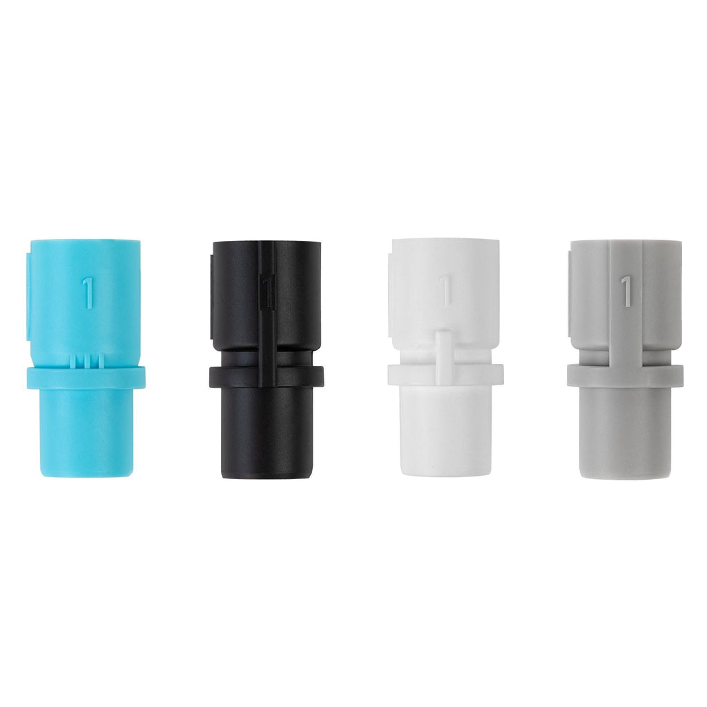Este kit cuenta con 4 adaptadores en color azul, negro, blanco y gris, que le permiten utilizar herramientas Silhouette de modelos de máquinas anteriores con los modelos Silhouette.