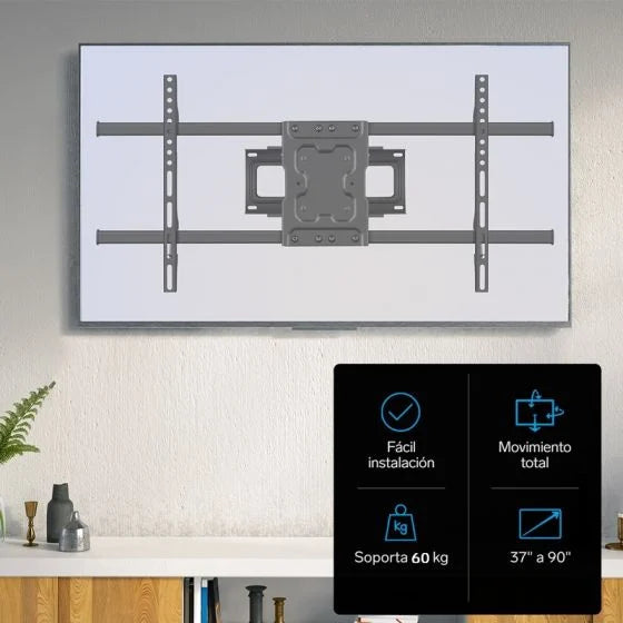 Está diseñado para sostener pantallas de 37 hasta 90 pulgadas (con un peso máximo de 60 kg).