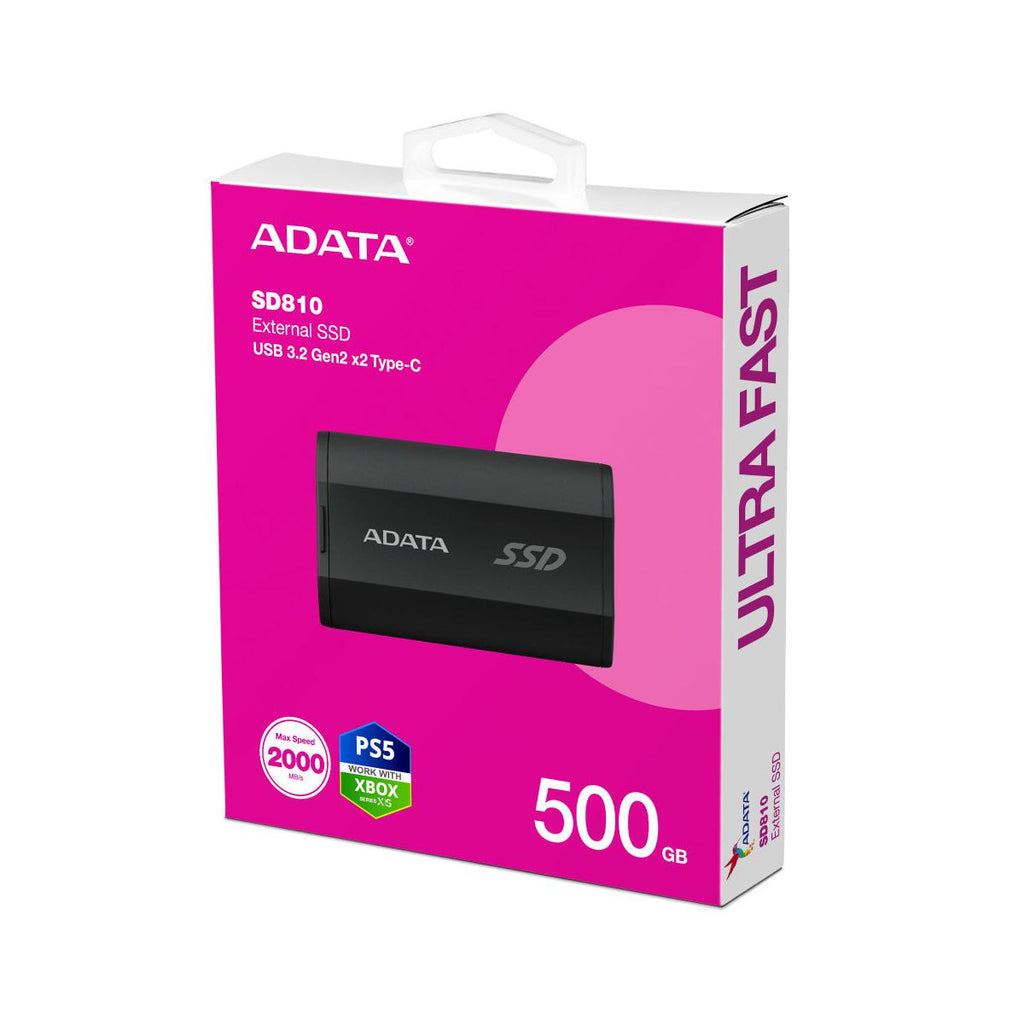 El SSD Externo Adata SD810 de 500GB en color negro es un dispositivo de almacenamiento portátil con una carcasa de aluminio resistente. Es compatible con sistemas operativos móviles Android, Linux, MAC y Windows 10 y 11. Con una velocidad de escritura y lectura de 2000 MB/s, este SSD cuenta con certificaciones de sostenibilidad CE, EAC y UKCA. Su diseño compacto de 44mm de ancho y 12.2mm de altura, junto con un peso de 41.7g, lo hacen ideal para transportar. Además, es resistente al agua y al polvo con un código IP68, y opera en un rango de temperatura de 5 a 50 °C. Viene con un cable USB tipo C a USB tipo C y tiene una garantía de 5 años.