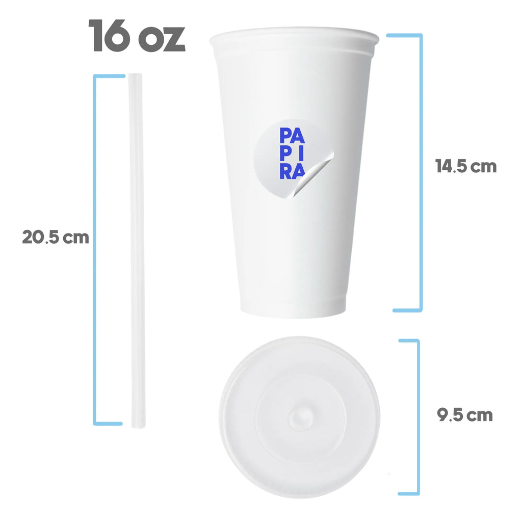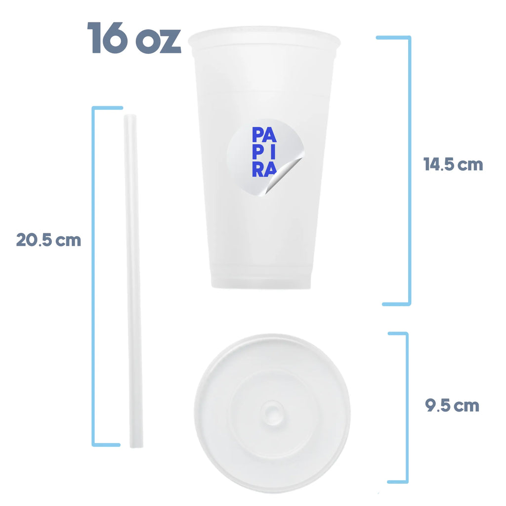 Los Vasos Personalizables Con Tapa Y Popote de la marca Papira son la solución perfecta para quienes buscan funcionalidad y estilo en sus bebidas. Con una capacidad de 473.176 mL y un diseño reutilizable, estos vasos son ideales para el hogar, la oficina o actividades al aire libre. Su altura de 14.5 cm y diámetro de boca de 9.5 cm ofrecen un ajuste cómodo en manos de diferentes tamaños, lo que los hace fáciles de transportar y de usar.